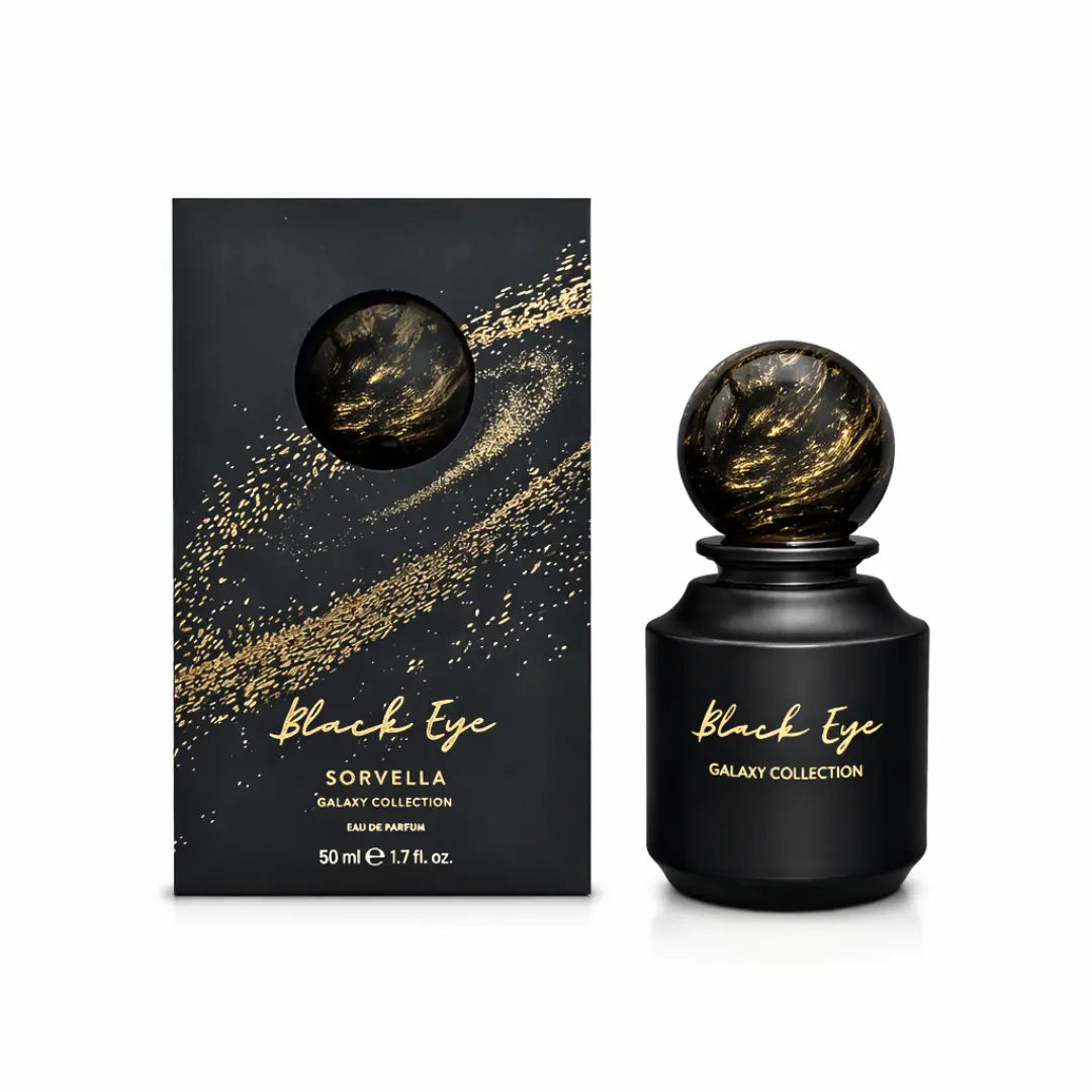 Black Eye z kolekcji Galaxy to chłodna, dynamiczna kompozycja o wyraźnie męskim charakterze. Otwarcie łączy gorzki grejpfrut z morskimi nutami, tworząc świeże, energetyczne i nowoczesne pierwsze wrażenie. W sercu zapachu pojawia się aromatyczny liść laurowy, przełamany eleganckim jaśminem. Baza oparta na drzewie gwajakowym, paczuli i szlachetnym mchu dębowym nadaje kompozycji siłę, głębię i długotrwały, mroczny ślad na skórze.